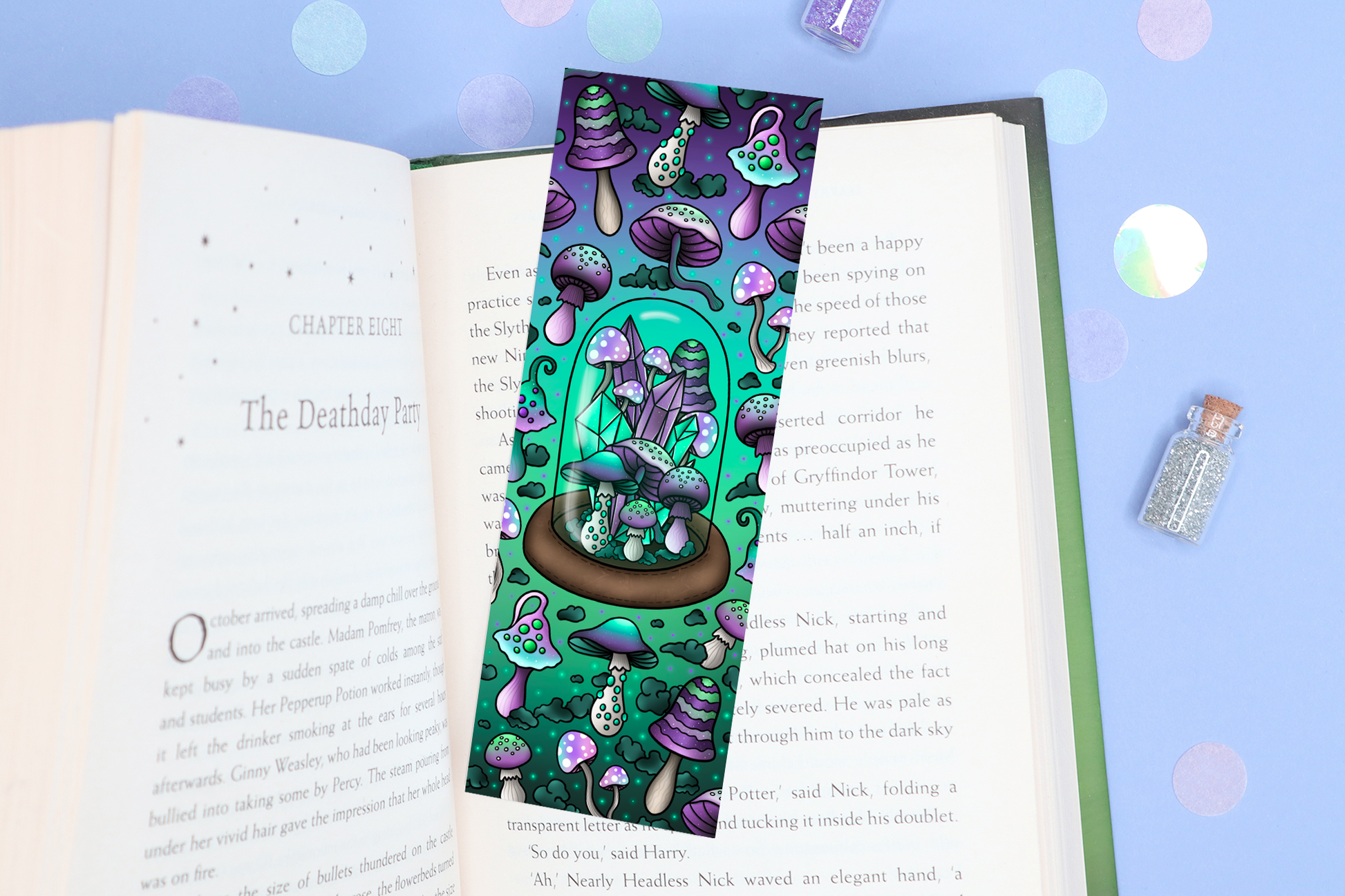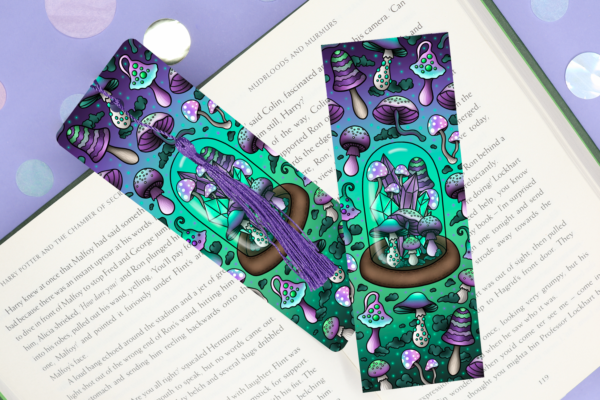 Zauberhaftes Wald-Terrarium-Natur-Fantasie-Hexen-Lesezeichen: Abgerundet / Mit Quaste
